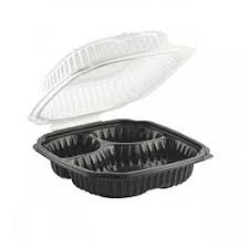 The Vintage 8×8 Black Base 3-Compartment Containers are perfect for packaging and serving takeout meals with convenience and reliability. Each case contains 100 containers, ensuring an ample supply for restaurants, food trucks, and other food service establishments. With a single compartment, these containers are ideal for serving a variety of food items, from entrees to sides and salads. Made from plastic, these containers are sturdy and durable, providing secure storage for food without the risk of leaks or spills. The black color adds a sleek and professional look to the containers, making them suitable for a wide range of culinary creations. Additionally, these containers are disposable for quick and easy cleanup, making them ideal for busy food service environments. Ensure your takeout meals are packaged securely and presented professionally with the Vintage Black Base 3-Compartment Containers.